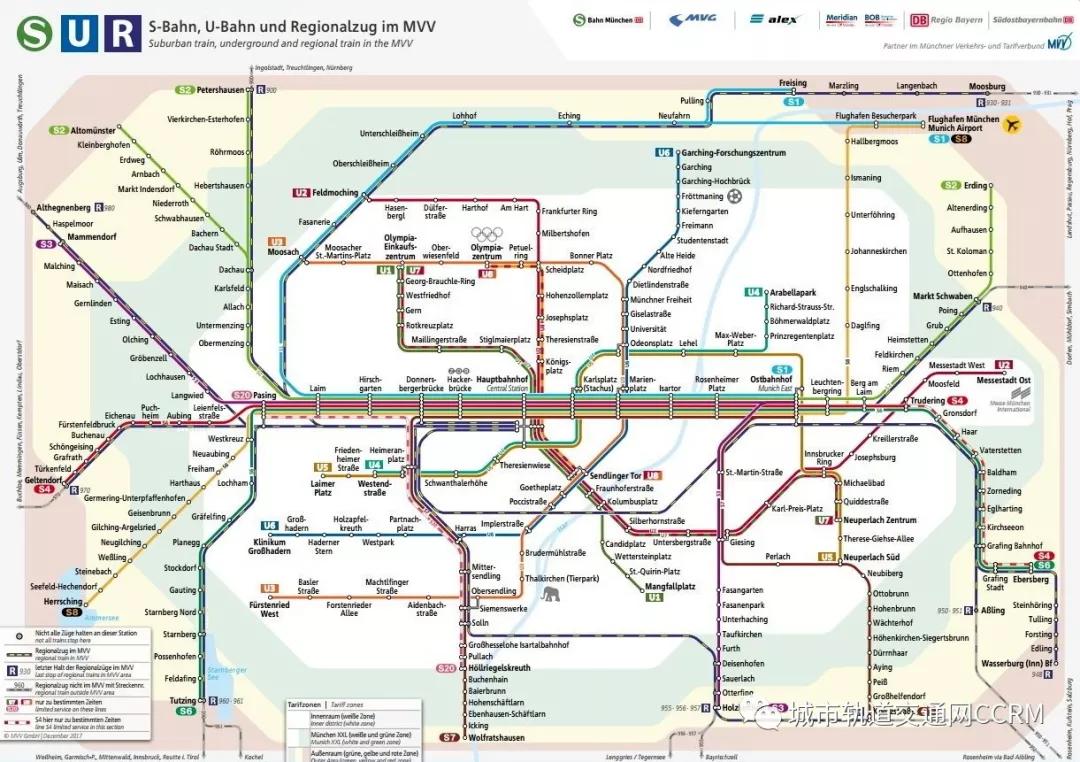 慕尼黑城市中心區(qū)的地鐵線網較為密集,線路呈現放射狀結構。慕尼黑地鐵現設計有7條線,即U1-U7,除U5、U6部分線路在地上外,其余線路均在地下。